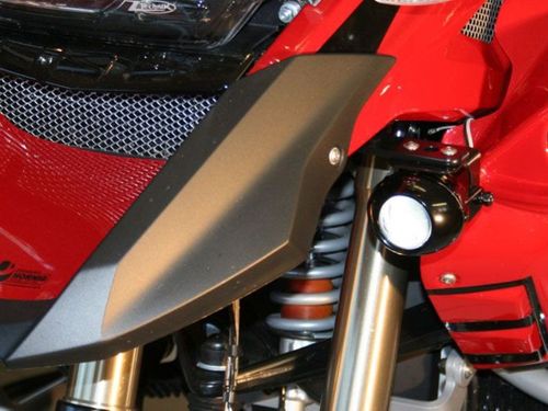Mit diesen extra Scheinwerfern werden Sie nicht nur bei Nacht sonder auch am Tag viel besser gesehen und verbessern somit nicht nur die Optik Ihrer Maschine sondern auch Ihre Sicherheit im Strassenverkehr. Die Halterung ist für Scheinwerfer links und rechts unter dem Schnabel.