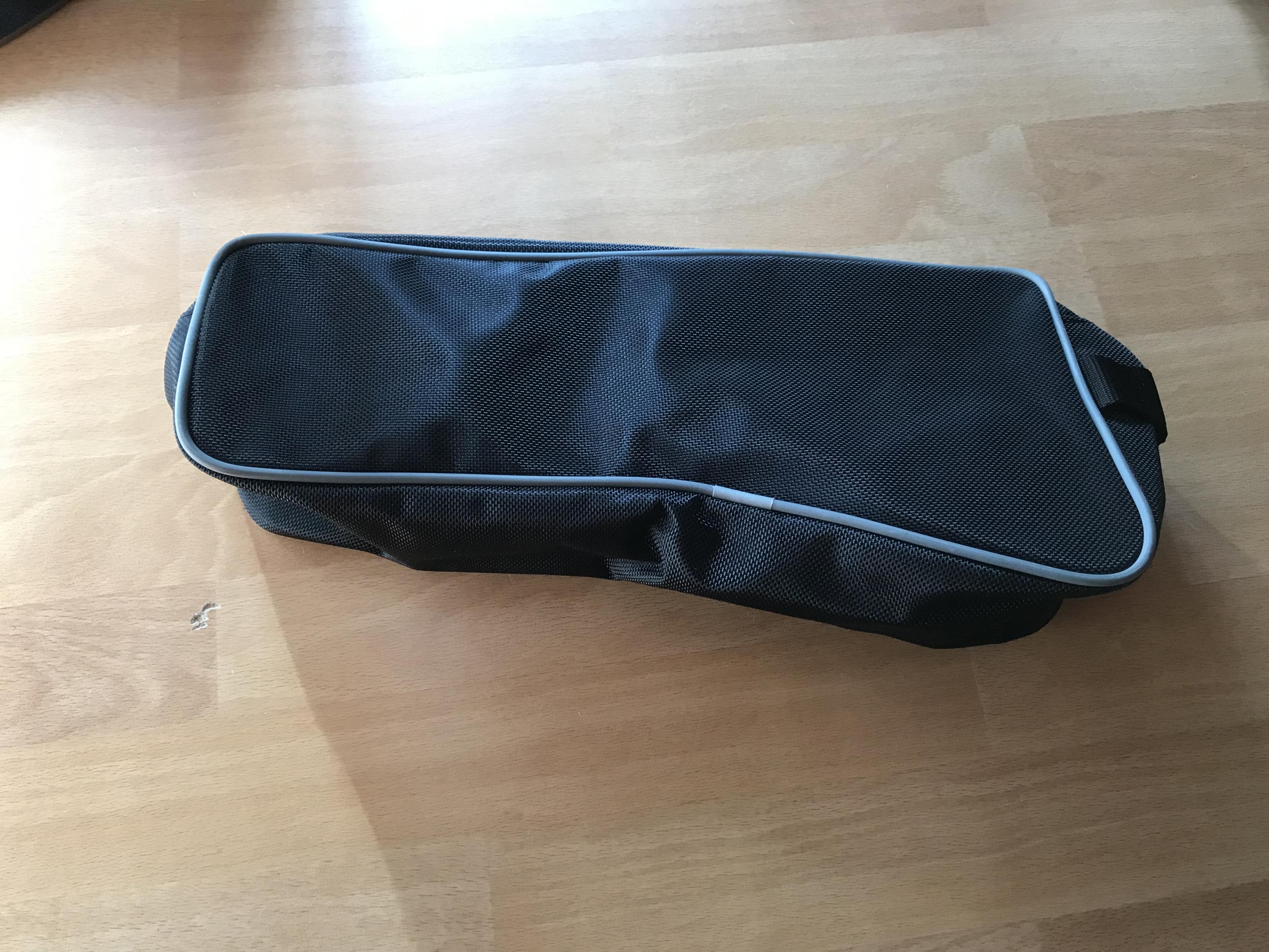 die Tasche füllt den Raum im Koffer über dem Auspuff aus